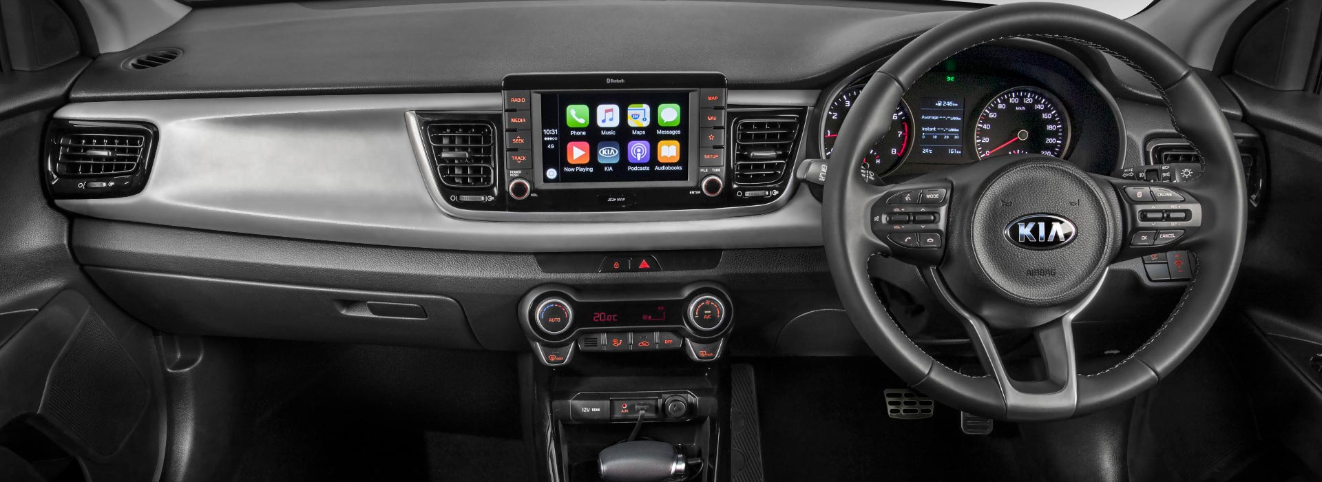 The interior has a premium feel and more space. The upper dash is connected to the upper door trim and designed to create a 3 dimensional fascia, the lower dash creates more space. The All New Rio is larger in leg room and shoulder room, giving you space where you need it most.