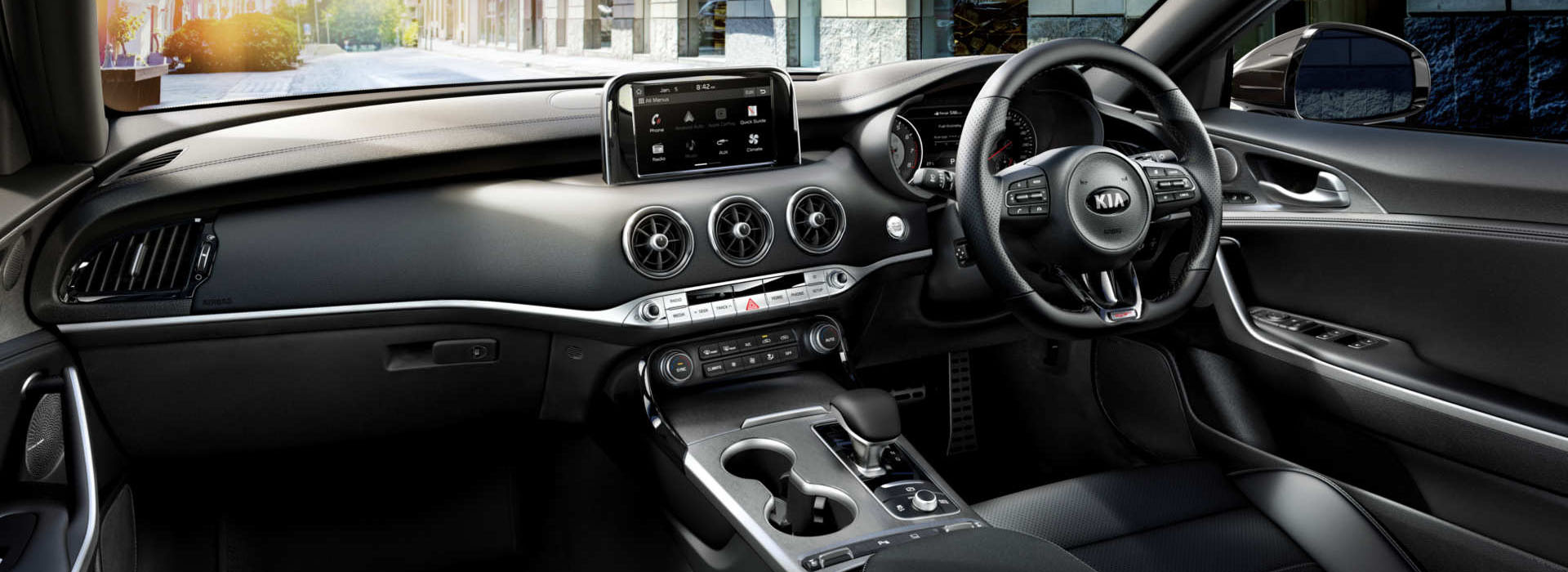 Every single finish and feature inside the Kia Stinger is dedicated to the thrill of driving. The aircraft-inspired cockpit surrounds you delivering everything that you need exactly where you need it.